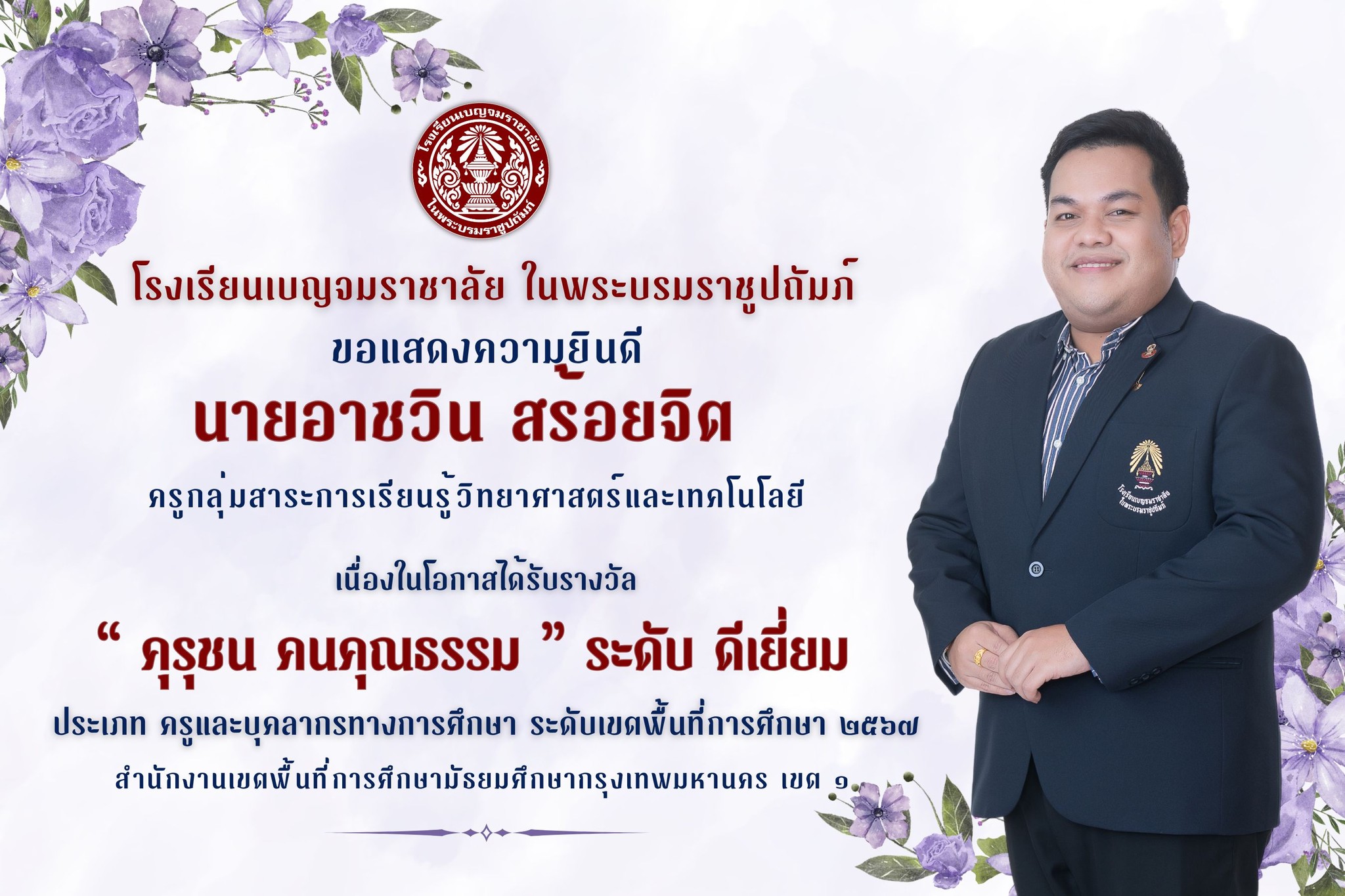ขอแสดงความยินดีกับคณะผู้บริหาร ครูและบุคลากรทางการศึกษาทุกท่าน เนื่องในโอกาสได้รับรางวัลคุรุชน คนคุณธรรม
